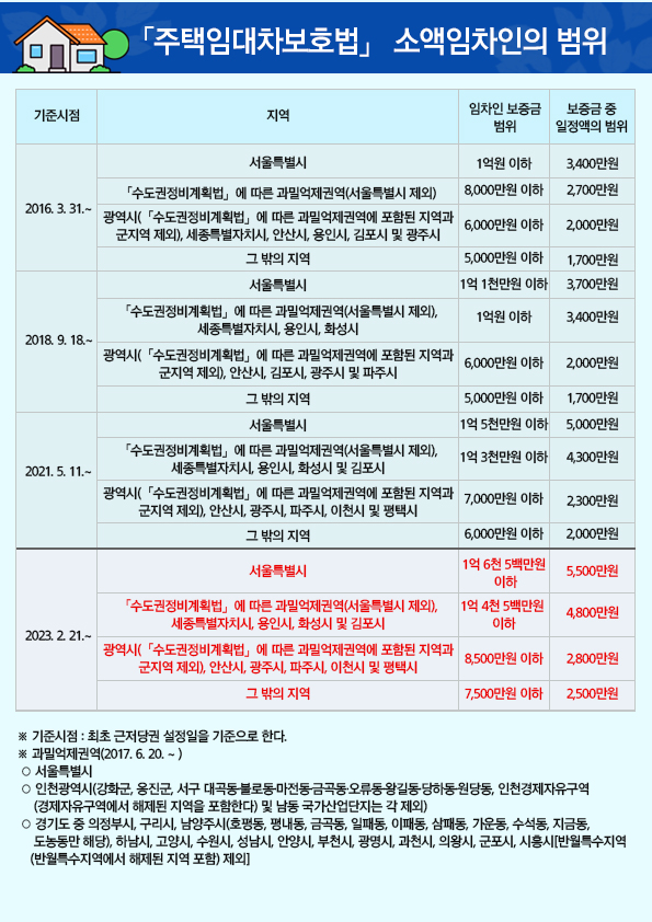 1. 소액보증금 범위안의 임차보증금의 범위는 지역과 기준시점에 따라 다릅니다.