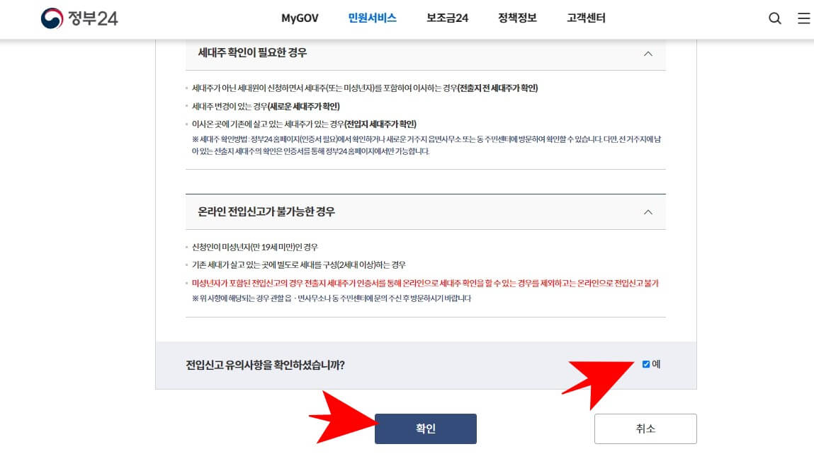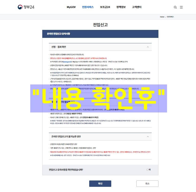 3. 온라인 전입신고 유의 사항을 확인하세요.